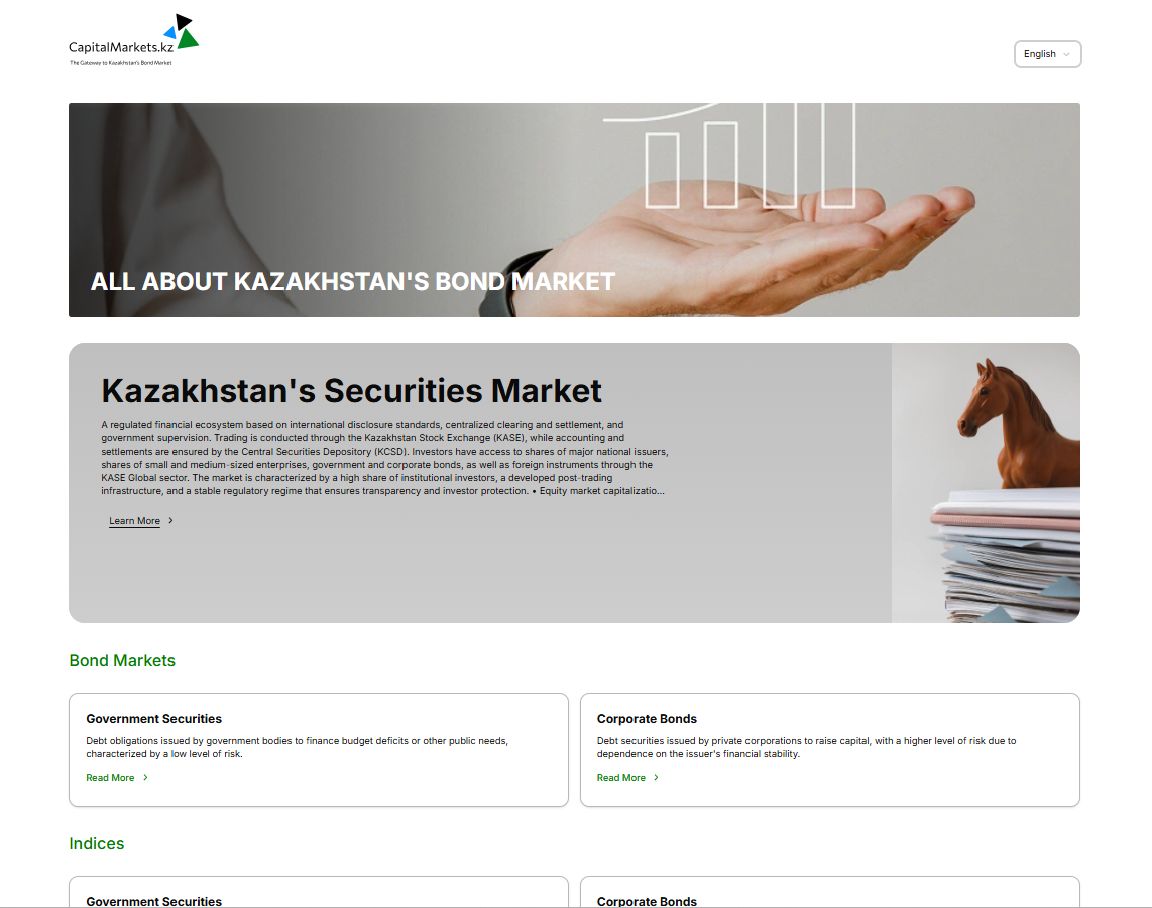 Бағалы қағаздар орталық депозитарийі (KCSD) Қазақстандық қор биржасымен (KASE) бірлесіп шетелдік және жергілікті инвесторлар үшін қазақстандық облигациялар нарығы туралы ақпараттың қолжетімділігін арттыру мақсатында Capital Markets Kazakhstan ақпараттық порталын іске қосты. Жаңа ресурста облигациялар нарығының құрылымы, оның қаржы институттары, реттеуші ортасы және қолжетімді бағалы қағаздар туралы мәліметтер жинақталған.