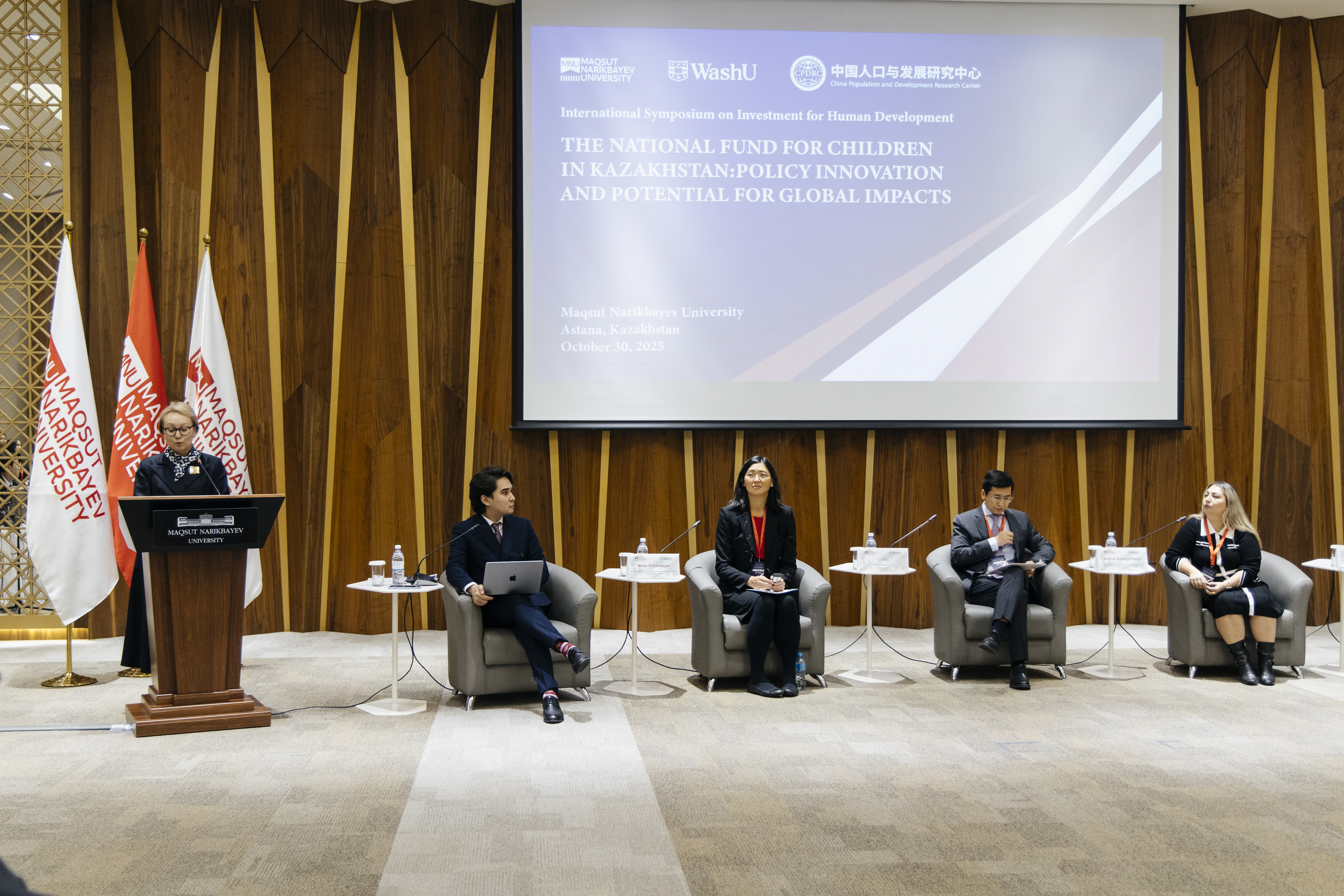 Maqsut Narikbayev University-де (MNU) «Қазақстан балаларына ұлттық қор: инновациялық саясат және жаһандық ықпал ету әлеуеті» халықаралық симпозиумы өтті. Сарапшылар әлеуметтік саясат, балалардың құқықтарын қорғау мәселелерін, сондай-ақ әрбір бала үшін тең мүмкіндіктерді қамтамасыз етудің жаңа тетіктерін талқылады.