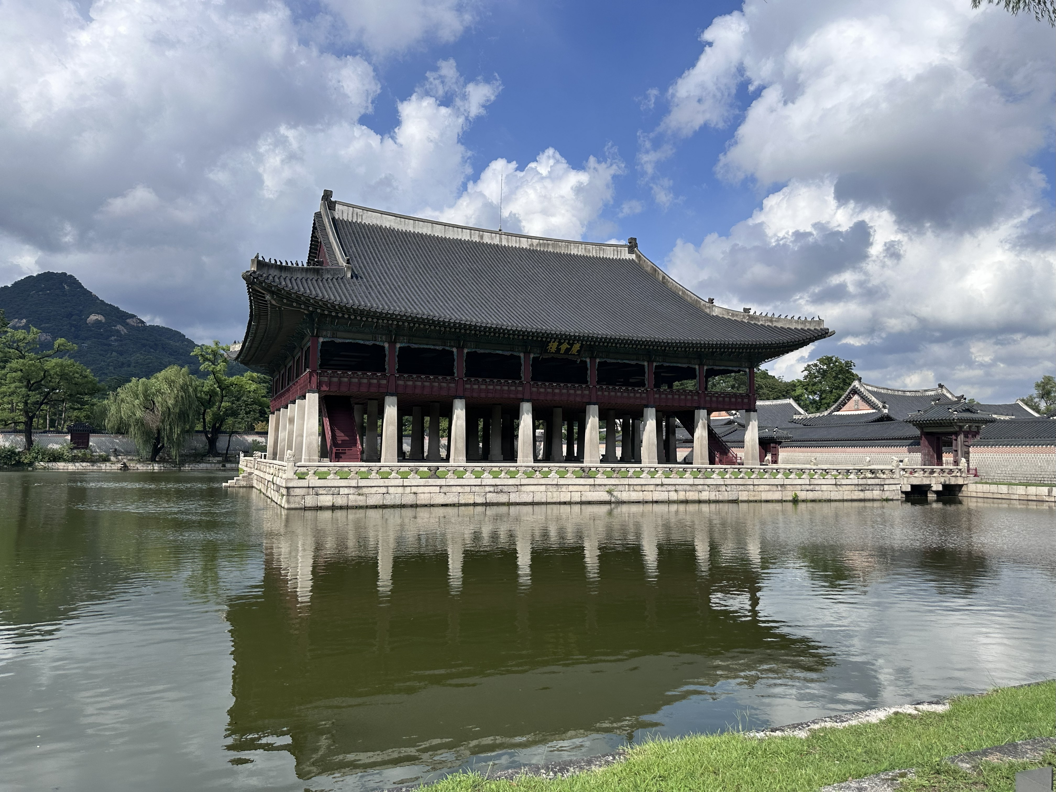 Сеул – Оңтүстік Кореяның жүрегі, заманауи технология мен көне дәстүрдің тоғысқан орталығы. Сапарымызды Кёнбоккун сарайынан бастадық. Бұл – Чосон әулетінің ең ірі сарайы, мұнда дәстүрлі гвардияшылардың салтанатты ауысу рәсімін көру ерекше әсер қалдырды.